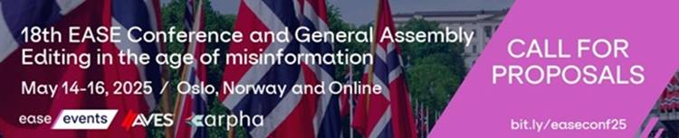 A EASE também promoverá em maio de 2025 em Oslo, na Noruega, a 18ª Conferência e Assembleia Geral de Editores na Era da Desinformação. Acesse o site do evento, com parte da programação também online, para mais informações sobre submissão de trabalhos.