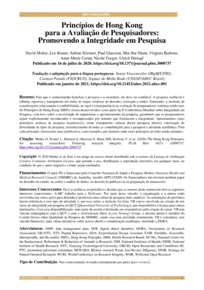 Princípios de Hong Kong para a Avaliação de Pesquisadores: Promovendo a Integridade em Pesquisa